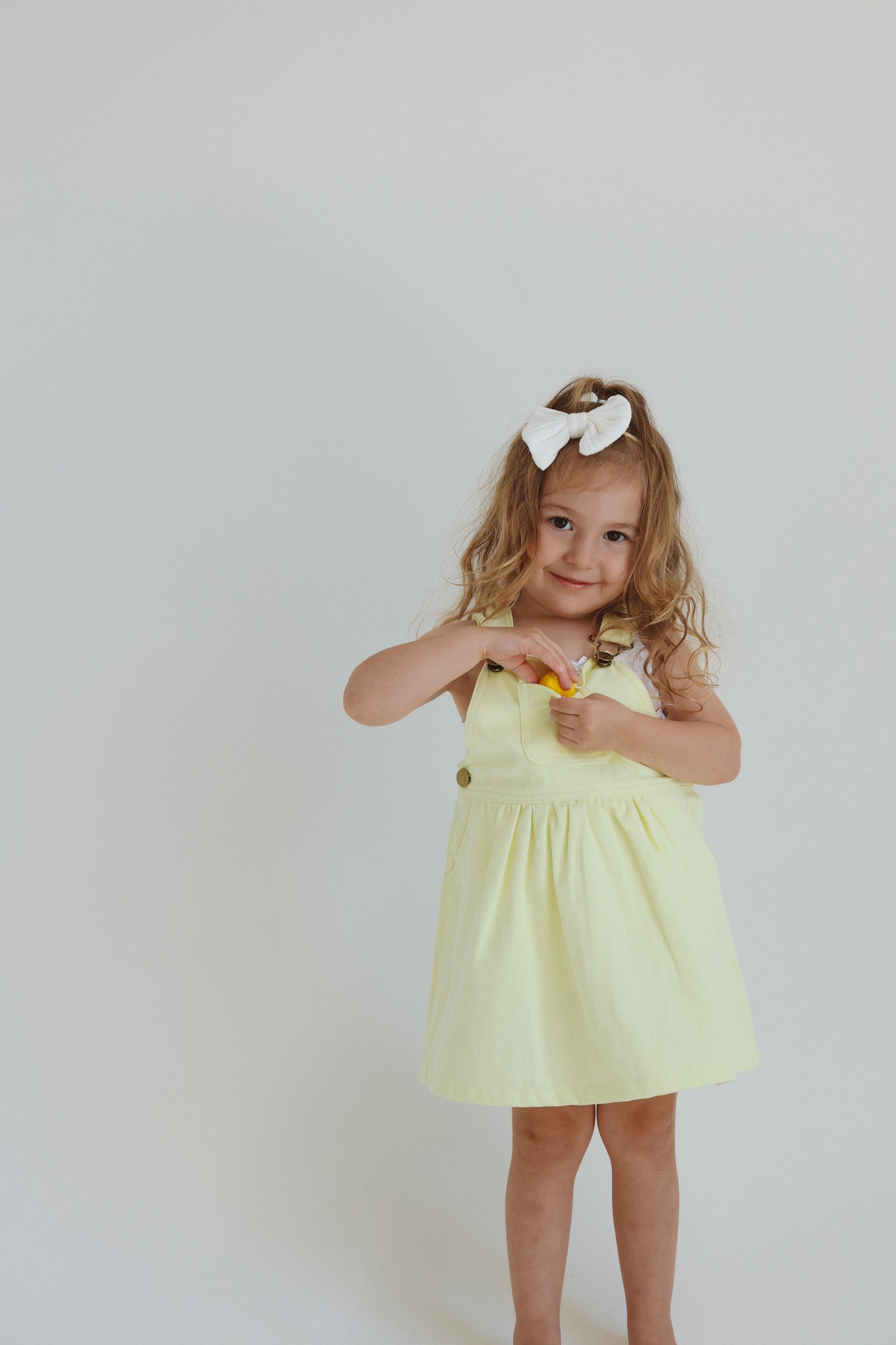 Brighten your little one’s wardrobe with the CHLOE Overall Dress in lemon, thoughtfully crafted from 100% cotton for all-day comfort and durability.